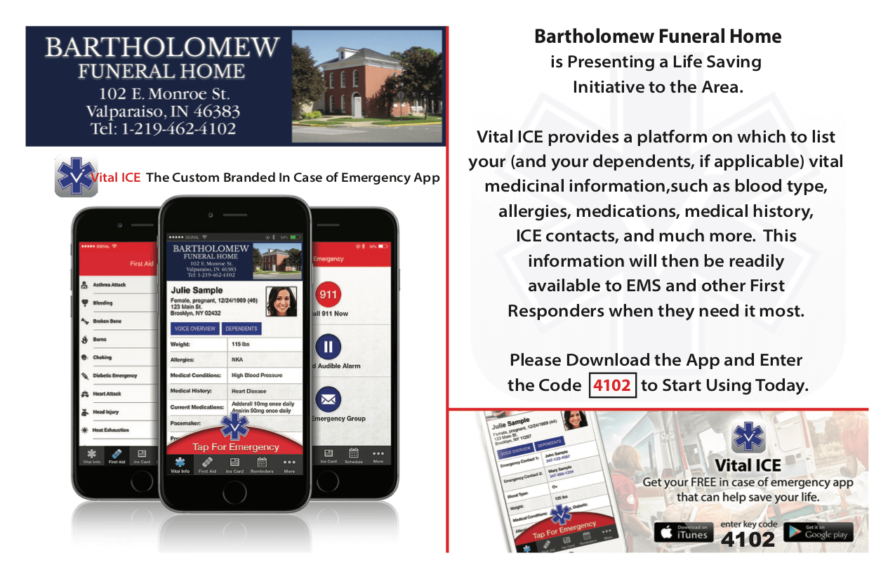 Or send flowers directly to a service happening at bartholomew funeral home. Bartholomew funeral home is the oldest privately owned funeral establishment in valparaiso dating back to 1892. When you experience a death in the family, bartholomew wants to make everything as easy as possible for you so you can do the things that you need to do when dealing with a family death.