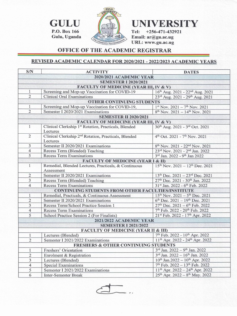 Gulu University Revised Academic Calendar 20202021 – 20222023 Pdf Academic Term Academia