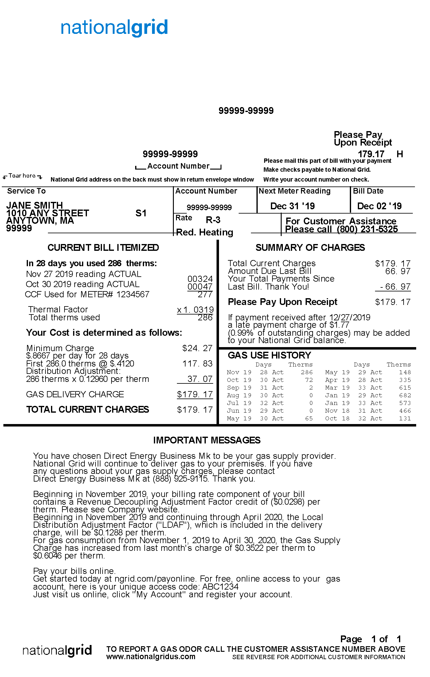Basic Bill – Electric National Grid
